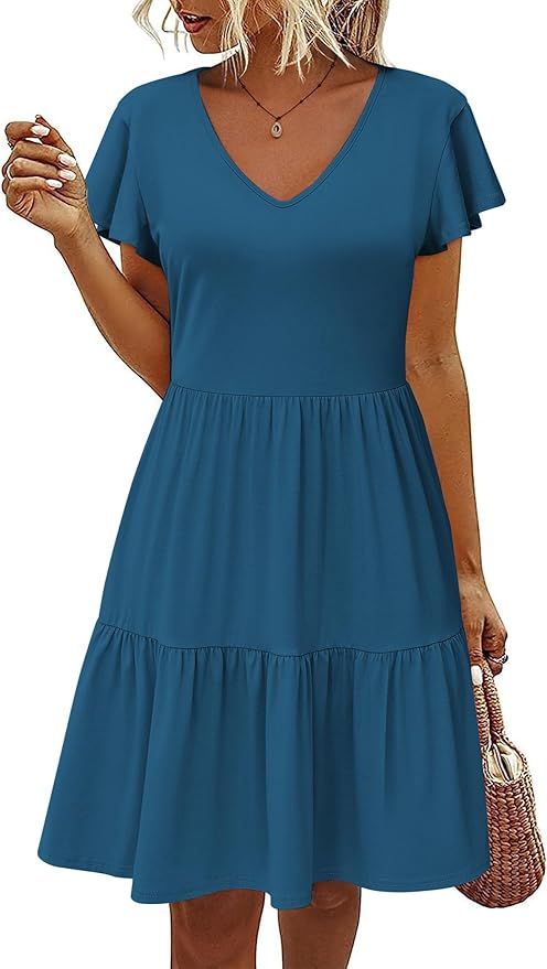 HOTOUCH Women’s Casual Summer Dress with Pockets V Neck Ruffle Sleeve A-Line Dresses