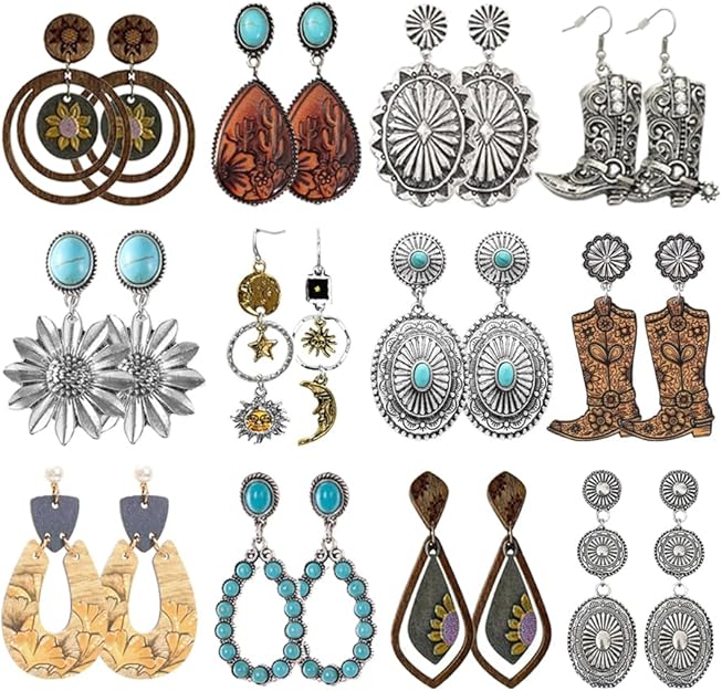12 Pairs Vintage Geometric Druse Crystal Drop Dangle Earrings Ethnic Style Vintage Boho Jewelry Waterdrop Earrings Jewelry Set for Women, $16.99