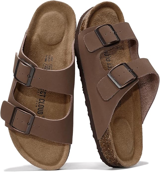 Unisex Cork Footbed Slide Sandal, Arch Support Summer Outdoor Sandals with Adjustable Buckle for Women and Men, $18.04