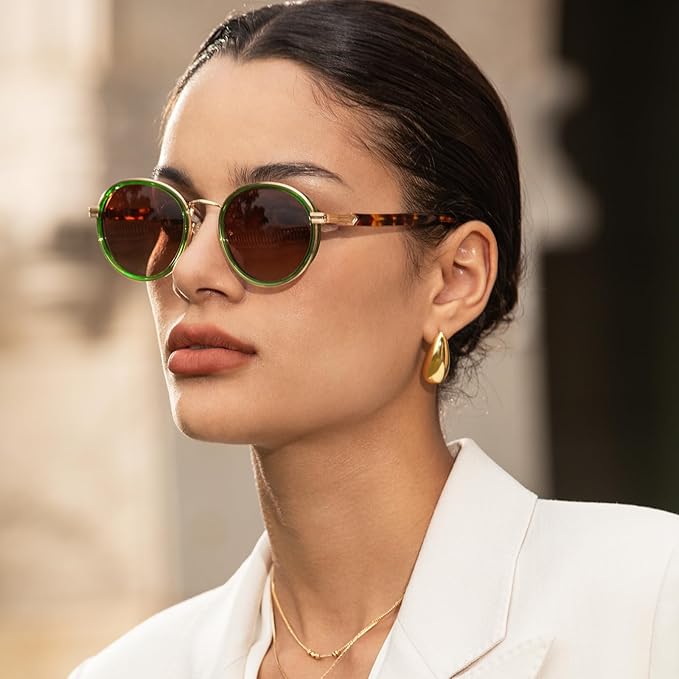 CARFIA Acetate-Metal Frame Round Sunglasses for Women Polarized UV Protection Stylish Designer Eyewear CA1951, $35