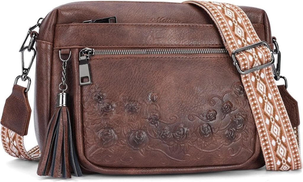 MEITRUE Rose Embossed Crossbody Bag for Women, Trendy Lightweight Shoulder Purse for Travel Daily Casual, $25.99